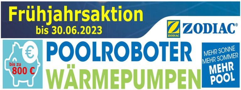 Nur noch bis 30.07. * ZODIAC Frühjahrsaktion 2023 – Poolreiniger und Wärmepumpen – bis zu 800 € sparen