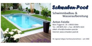 Der schnelle Weg zum Team von Schwaben-Pool. Einfach das Formular ausfüllen und den SENDEN-BUTTON am Ende drücken. Eine Kopie Ihrer Nachricht erhalten Sie per E-Mail an Ihr E-Mail-Postfach.